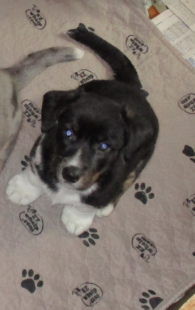 He's so cute , playful , & affectionate . . . we'll take the Blue Merle ! |