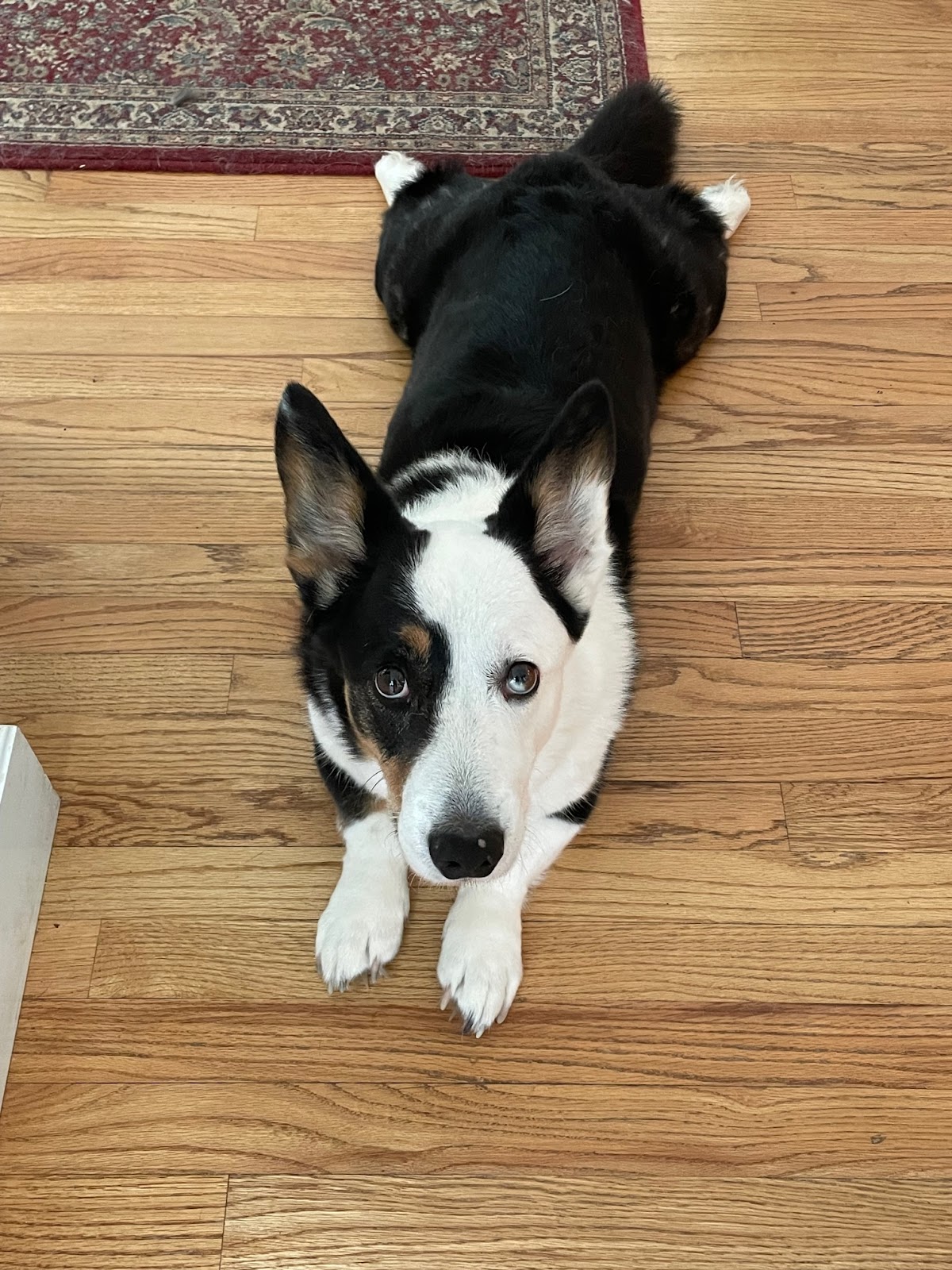 Poor Bill , named after Prince William , never had a chance to find a forever home . One ear refuses to go up , while his brother's ears were up at 6 weeks ! Still pure Cardigan & a beefy little goofy male . Love bug !