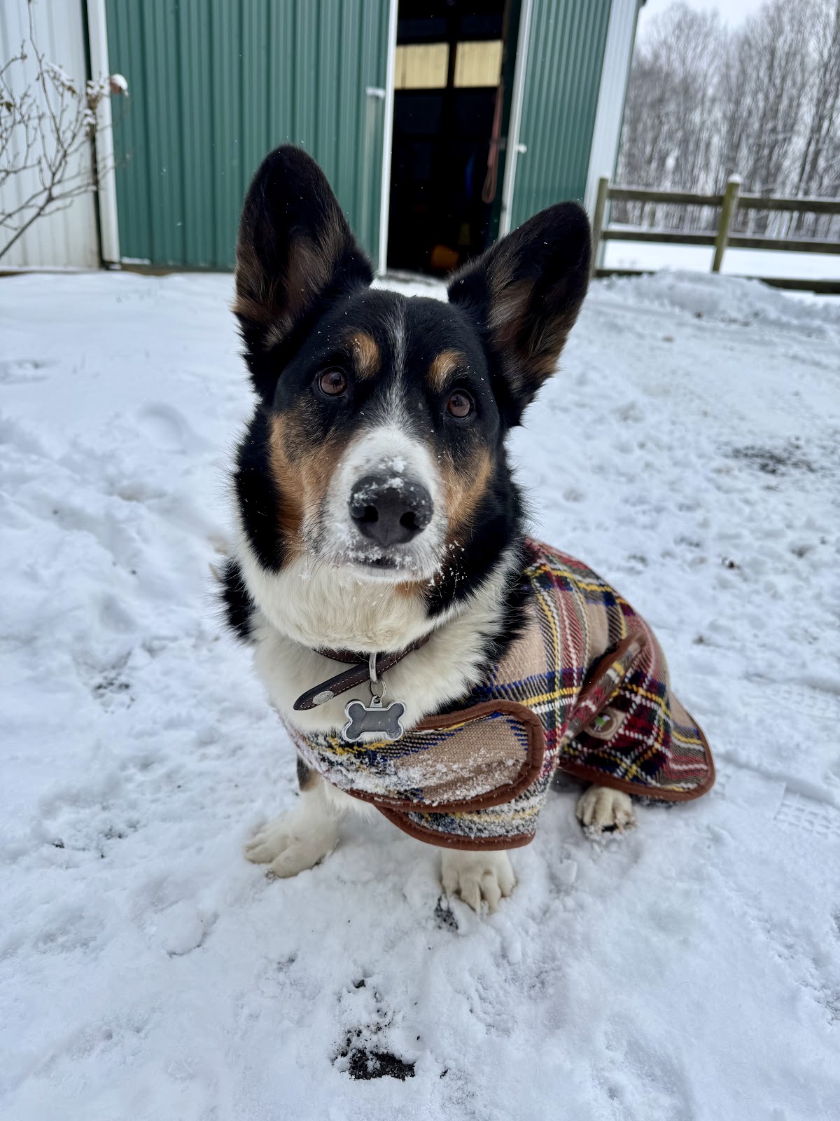 Took Chuck to vet . Was planning on breeding him , instead he'll become someone's companion . Chuck is a Black & White 2 year old AKC Cardigan , from my championship bloodline . February 11 he will be neutered , costing about $1000 . Because I love the breed , he would be available to an approved home for $500 !